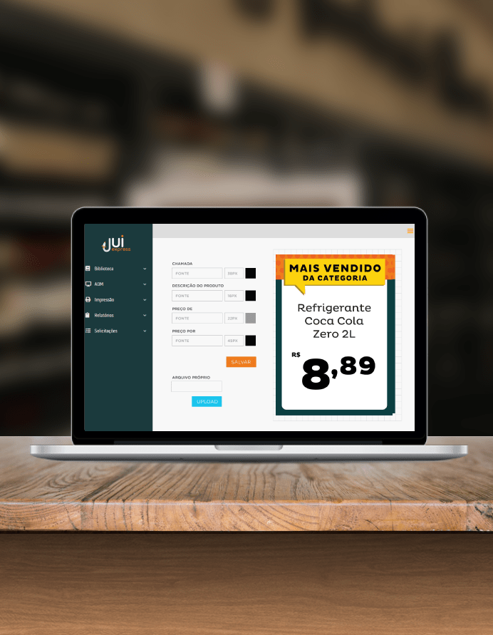 A solução de cartazeamento digital da JUI Express te ajudará a criar cartazes preços de forma rápida e fácil, minimizando erros, padronizando a comunicação com maior controle.